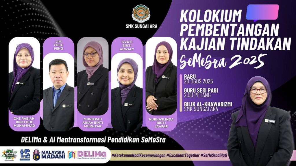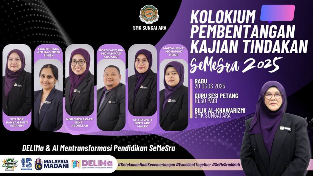 Kolokium Pembentangan Kajian Tindakan SeMeSra 2025 telah berlangsung dengan melibatkan guru sesi pagi dan petang. Program ini menjadi platform penting bagi guru berkongsi hasil kajian tindakan, bertukar pandangan serta menambah baik amalan PdP demi meningkatkan keberkesanan pengajaran dan pembelajaran di SMK Sungai Ara